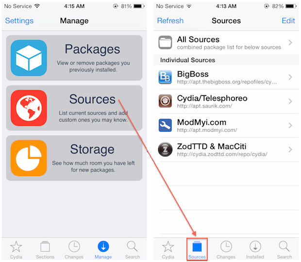 Обратите внимание, что в перечне справа предлагаются самые популярные репозитарии – в частности, BigBoss и ModMyi . Чтобы добавить в список другой, нажмите «Edit », затем «Add ».