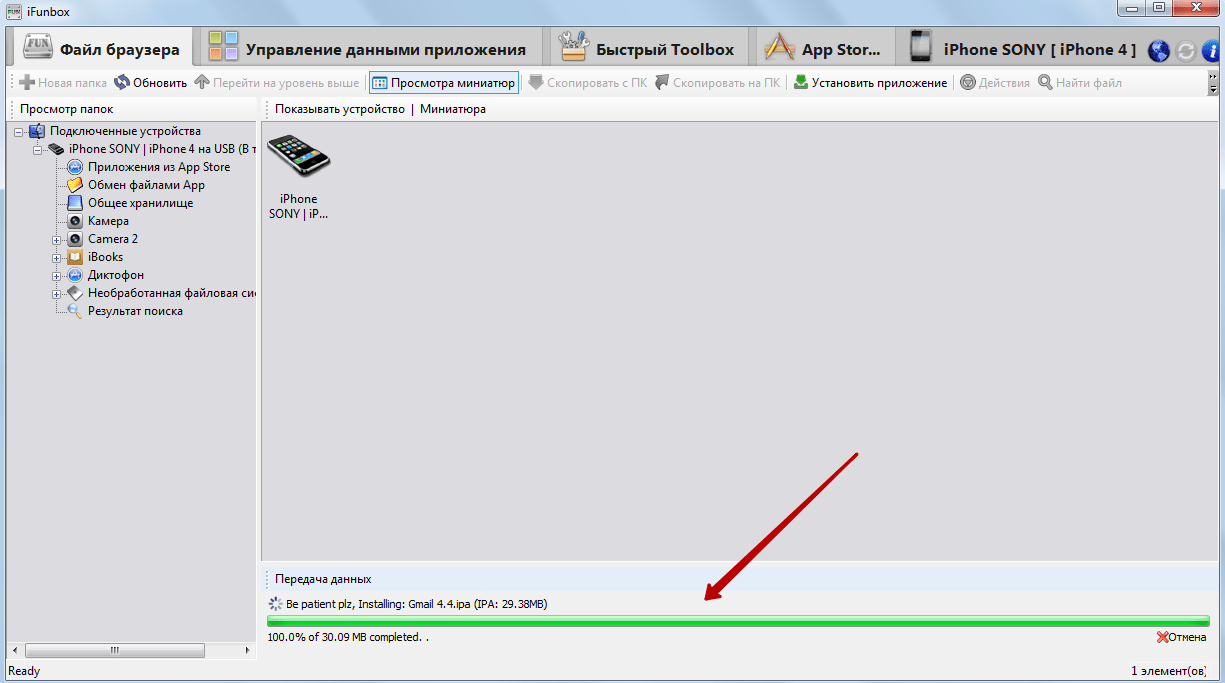 Шаг 5 . Дожидайтесь завершения загрузки. Установка программ на iPhone происходит автоматически.