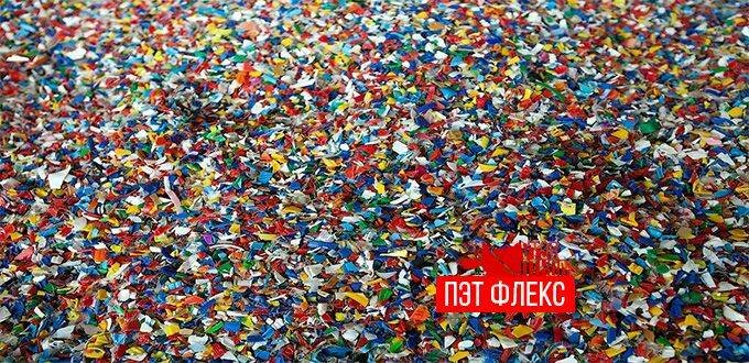 В итоге получается переработанное сырье, которое имеет вид белых или цветных пластиковых хлопьев - флекс .