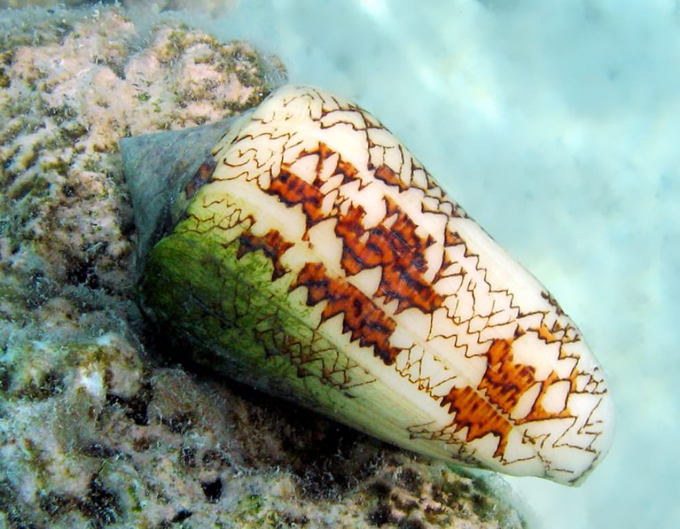 Конусы – это представители брюхоногих моллюсков, они получили известность среди ученых не только за свои невообразимые окрасы и формы, но и за свою ядовитость.