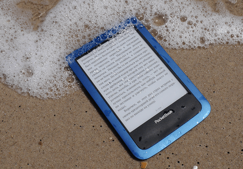 На первом месте – электронная книга PocketBook 641 Aqua 2. Согласно пользовательским отзывам – это «лучший ридер для отпуска», «лучший покетбук для неуклюжих людей» и «лучшая электронная книга для семейных людей». Почему? Потому что PocketBook 641 Aqua 2 - это единственная электронная книга в мире, которая соответствует стандарту IP57. Читалки других марок имеют защиту максимум от капель и брызг воды, но никак не от погружения в воду. А «Аква» выдерживает полчаса на глубине до 1 метра.