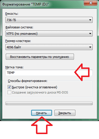 Важно! Форматирование безвозвратно стирает данные, которые находятся на жестком диске. Поэтому нужные файлы предварительно скопируйте на любой носитель.