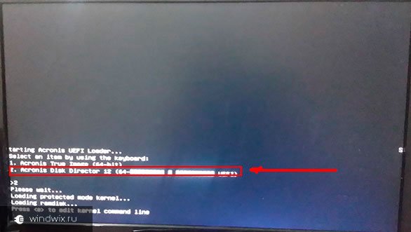 5 Появляется черный экран, где необходимо выбрать полную версию Acronis Disk Director .
