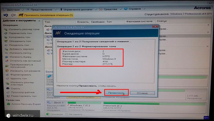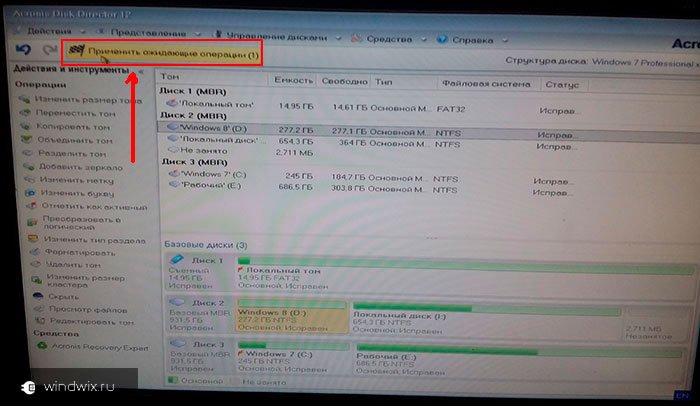 - Подтвердите действие в окне с флажком «Применить ожидающие операции».