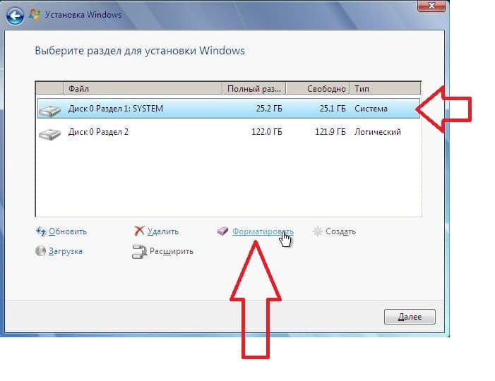 Сразу нужно отметить, что я буду говорить о Windows 7, 8, 10, так как предыдущие версии корпорация Microsoft перестала поддерживать. Итак, когда во время установки новой операционной системы вы дошли до пункта выбора диска, нужно:
