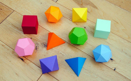 - С использованием наглядного материала. Для этого необходимо иметь несколько заготовок различных объемных геометрических фигур: конус, цилиндр, куб, пирамида и др. Задача: изучить фигуры; узнать, как они выглядят с различных ракурсов; накладывать фигуры друг на друга и смотреть, что получается и т.д.