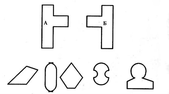 - Проверка умения анализировать и синтезировать информацию, по результатам которого выявляется способность дошкольника (первоклассника) определять формы различных фигур и замечать их в сложных картинках с наложенными друг на друга фигурами.