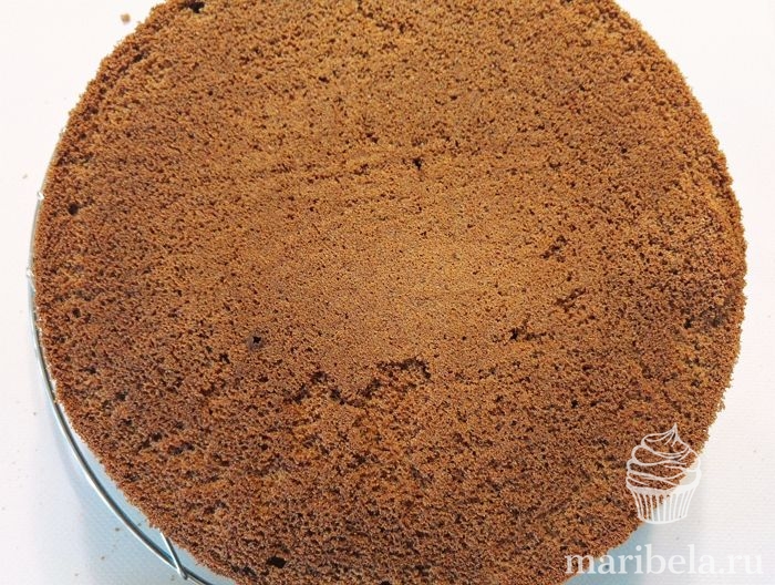 - Готовому бисквиту дать остыть, вырезать основание для торта.