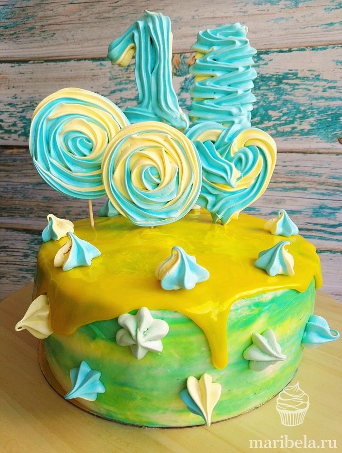 - Растопить 50 г черного шоколада с 35 г сливочного масла. Глазурью украсить торт.