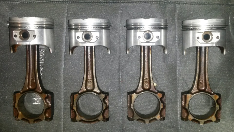 Алюминиевые поршни оснащены углублениями на днище, предотвращающими контакт с клапанами в момент разрыва ремня ГРМ.