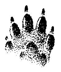 Размер отпечатка 5х4.5см, на влажном грунте видны когти. При обычном шаге отпечатки задних лап не попадают в отпечатки передних.