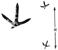 Размер следа — 5,5х12см, пальцы собраны в «комок»
