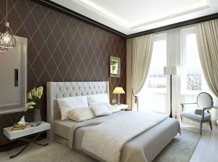 Спальня ар-деко в коричнево-бежевых тонах