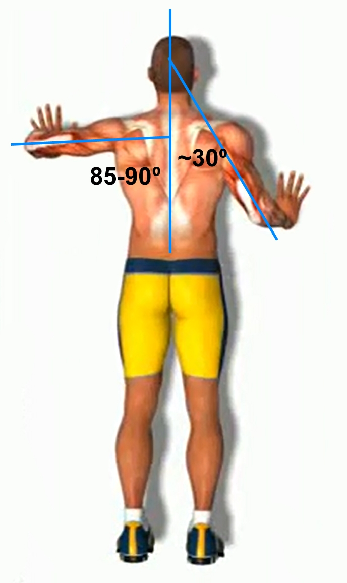 Положение, когда угол между плечом и телом составляет 45 градусов имеет свою особенность. Это положение, позволяющее развивать серьёзные усилия, и, в то же время, безопасное для плеч.