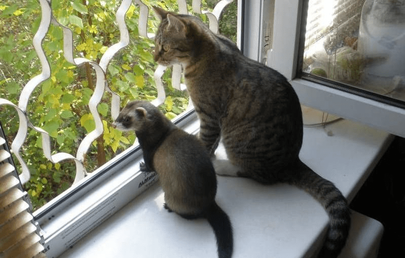 Хорьки уживаются с кошками, спокойными собаками, но птицы и грызуны для них добыча, на которую можно поохотиться. Не стоит их держать и рядом с кроликами, шиншиллами.