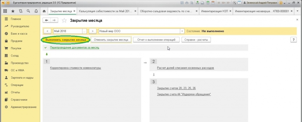 Рисунок 6. Инвентаризация производства в 1С 8.3