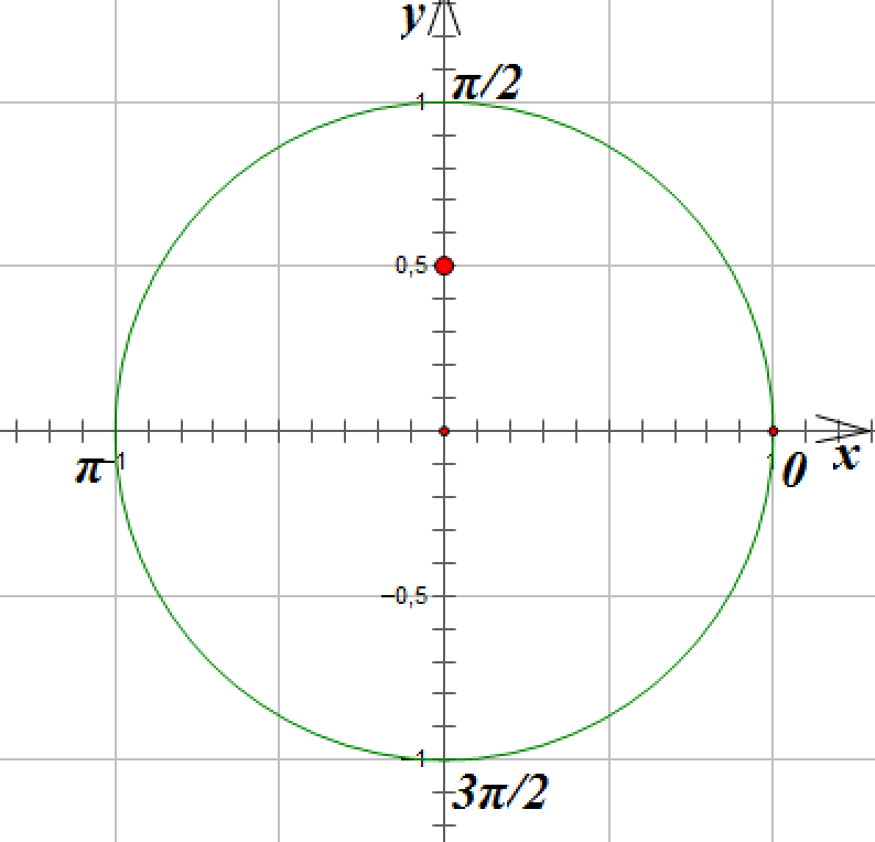 Отметим на окружности единственную точку, ордината которой равна 1: