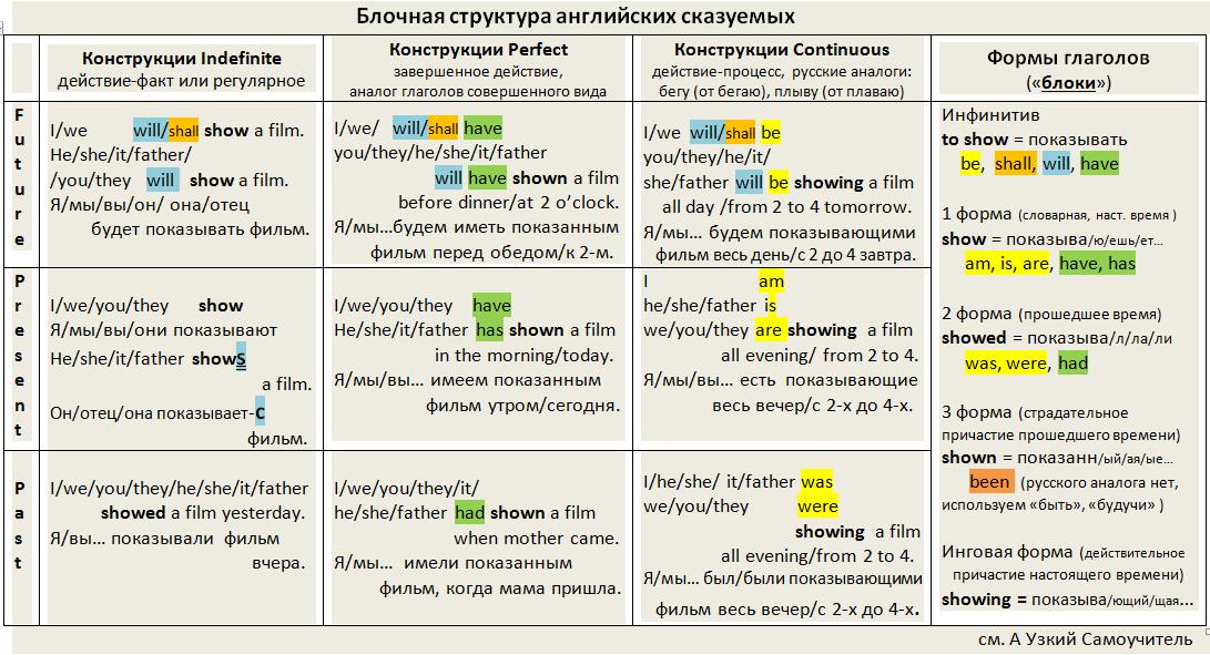Блочная структура английских сказуемых