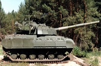 Вес танка Т-90 - 46,5 тонн. Боевая машина оснащена пусковой установкой 125-мм, предназначенной для поражения целей всех видов, а также прицельным комплексом и тепловизором. Танк обладает высокой скорострельностью, отличной скоростью (60 км), а в состав экипажа входит три человека.