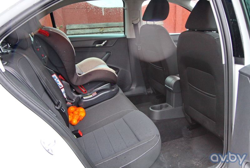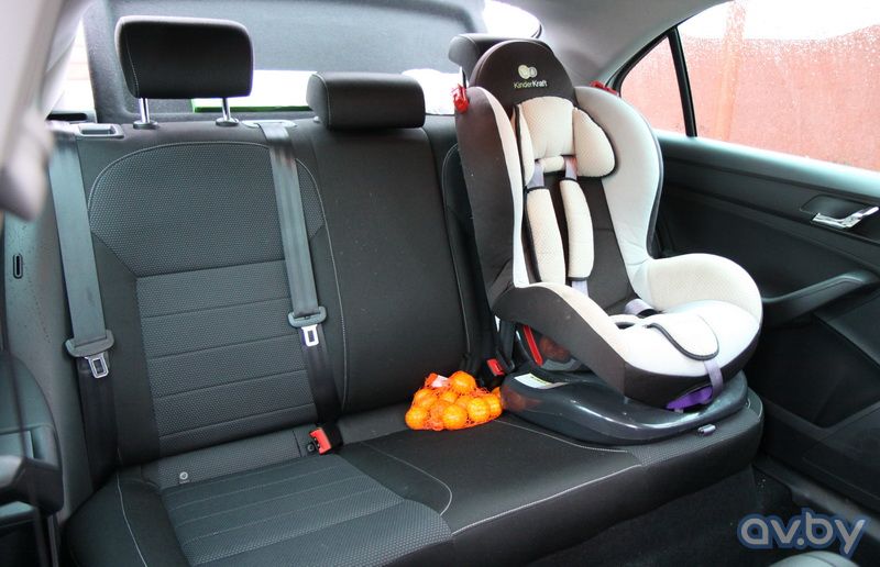 Задним пассажирам в дальней дороге там места будет предостаточно. А на практике было проверено: двое взрослых и ребенок в детском кресле друг друга не поджимают.