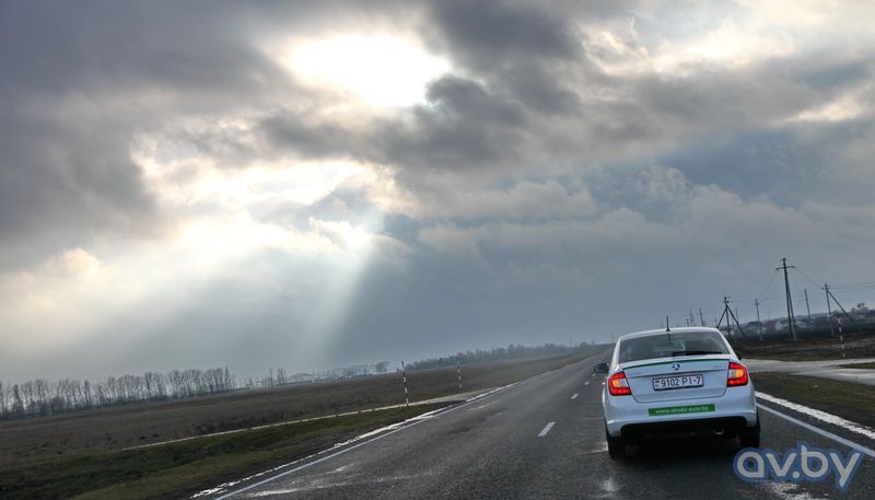 И если незначительные дорожные дефекты в виде небольшой ямки, стыка или просевшего в асфальт люка подвеска Rapid съедает более-менее терпимо, то на проселочной дороге любая неровность по мере возрастания скорости явно ощущается пассажирами чешского лифтбэка. Ради эксперимента проехал пару километров по обыкновенной белорусской гравийке и для себя отметил, что выше 40 км/ч гнать на «Рапиде» по проселку не рекомендуется.