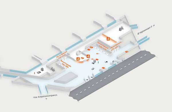 Шереметьево терминал Ф, вылет схема, регистрация на рейсы, уровень-2 .