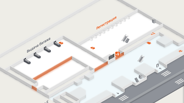 - На 1 этаже располагаются зоны регистрации и выдачи багажа;