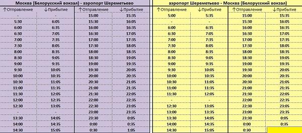 Расписание движения Аэроэкспресса