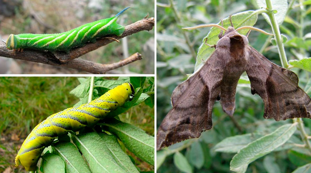- Полифаги . Это гусеницы, которые едят без разбора любые растения. К этому виду относятся ночные бабочки, такие как винный бражник, глазчатый бражник, слепой бражник, медведица кайя, мотыльки, павлиноглазка и другие.