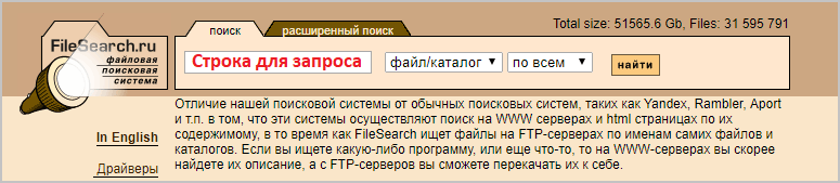 «Файловая поисковая система». Входит в сотню самых больших FTP-серверов на территории РФ. Уровень популярности соответствует восьмому месту.