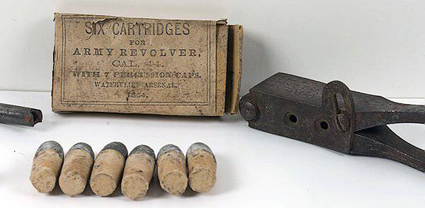 Бумажные патроны калибра.44 и инструмент для заряжания