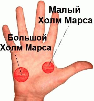Марс на ладони находится в двух местах