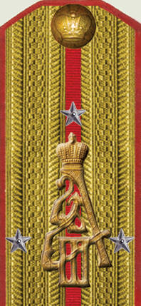 - в продольном направлении погон с нижнего края размещаются 2 звезды;