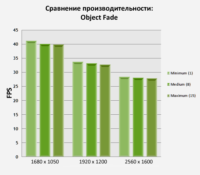 Зависимость уровня производительности от изменений установок детализации показана ниже: