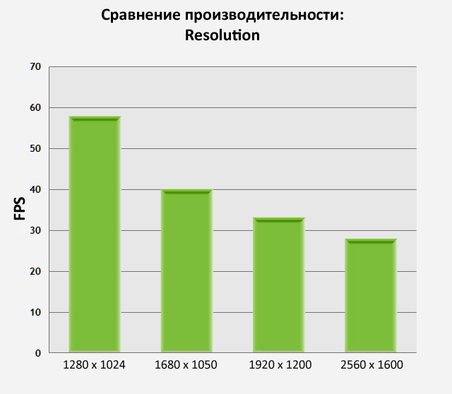 Из графика видно, что значение FPS обратно пропорционально уровню разрешения: чем лучше изображение, тем ниже производительность. Но в нашей игре FPS снижается еще не в таких больших масштабах, как в других. Все дело в том, что в Skyrim принудительно ограничен уровень загрузки центрального процессора (CPU). Это значит, что если ваш процессор немного слабоват, зато есть мощная видеокарта, тогда изменение разрешения не произведет сколько-нибудь заметного влияния на общую производительность системы.