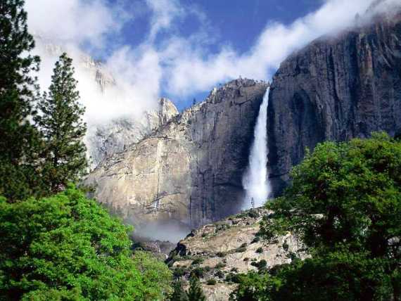 Водопад Йосемити расположен на востоке штата Калифорния в США на реке Мерсед. Общая высота водопада 739 метров. Водопад состоит из 3-х каскадов, высота верхнего водопада составляет 435 метров, среднего – 206 и самого низкого 98 метров.