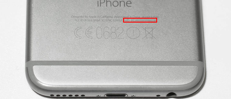 - IMEI можно увидеть на задней крышке (для моделей iPhone 5 — 5S, iPhone 6 — 6 Plus). Вторая строчка — это и есть IMEI.