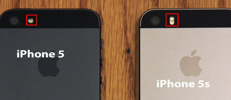 У iPhone 5s она двойная в форме овала (TrueTone), у iPhone 5 – круглая одинарная.