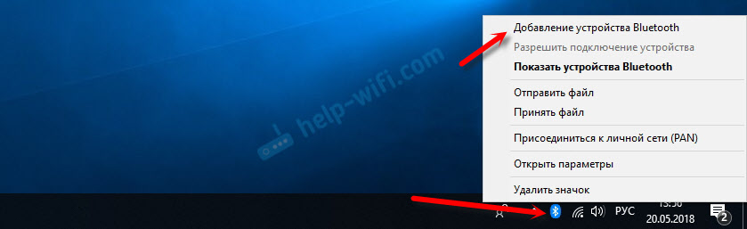 А чтобы подключить наушники, геймпад, мышку, клавиатуру, или другое Bluetooth-устройство к компьютеру, зайдите в "Параметры" в раздел "Устройства". Или нажав на иконку в трее и выберите "Добавление устройства Bluetooth".