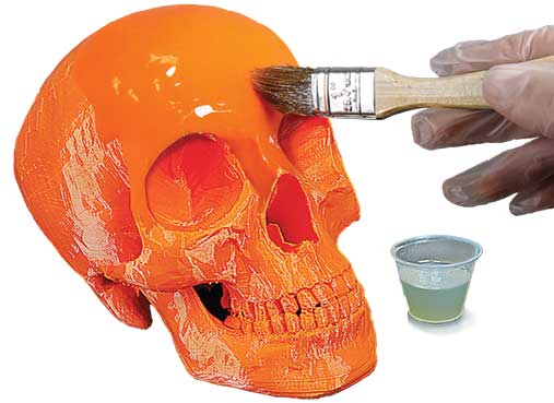 Помимо дихлорметана для качественной обработки поверхности кистью очень пригодится такое вещество, как XTC-3D от компании Smooth-On. Этот материал представляет собой защитное покрытие из двух элеменов и служит для качественного выравнивания и финишной обработки 3D-объектов. В процессе обработки происходит смешивание двух разновидностей жидкости, а затем смесь с помощью кисти наносят на поверхность изделия. Процедуру нанесения нужно выполнить в пределах пяти минут. Отверждевание происходит в течение 4 часов, в зависимости от массы объекта и температуры. XTC-3D обладает рядом важных свойств: оно позволяет создавать твердое, ударопрочное покрытие, которое можно шлифовать, грунтовать или красить.