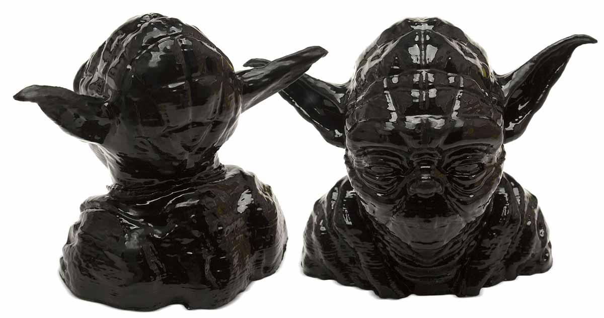Мы погружали Йоду в дихлорметан на 1-5 секунд, а за последующие 1-2 минуты растворитель полностью испарялся с поверхности. Чтобы сделать глянцевую поверхность, последний раз окуните деталь в растворитель на 0.5 секунды, он не успеет впитаться и сразу испарится, конфетный глянец обеспечен.