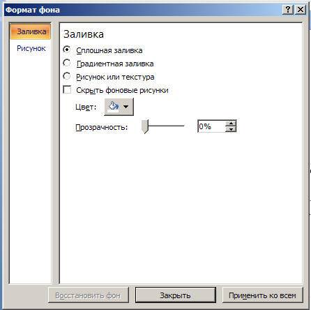 В этом окне можно выбрать тип заливки: