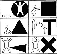 Ответы с воздушного судна могут быть следующими (рис. 161): Вас вижу — вираж в горизонтальной плоскости (круг над обнаруженными людьми) или зеленая ракета.