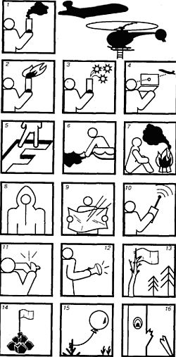 ! ! ! Выдумывать собственные сигналы не стоит, а если вы по какой-либо причине забыли, как расшифровывается тот или иной знак, можно выложить на земле общеизвестный сигнал SOS.