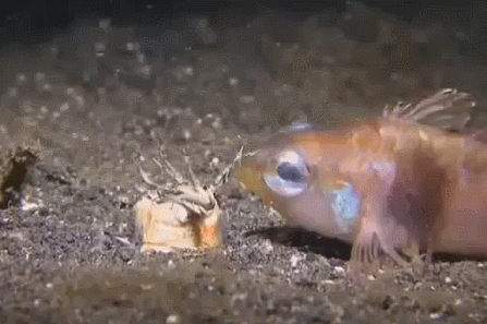 - глубоководные удильщики (принадлежащие подотряду церациевидные - Ceratioidei ), которые завлекают добычу в пределах досягаемости с помощью специальной "удочки" со светящейся "приманкой";