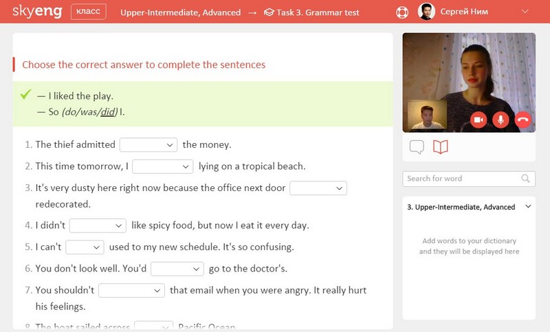 Мое пробно-проверочное занятие на SkyEng. Проверяем знание грамматики.